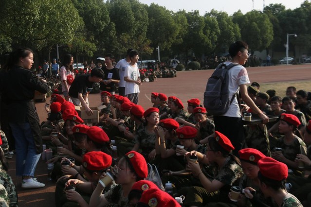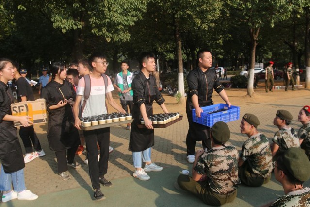 (供稿:陈杰 摄影:吴胜华、秦如玉 编辑:刘超)9月12日下午,我们烹饪与营养教育协会、陆源茶酒文化社和旅游协会在新生军训场地举行了“下军营送清凉”活动。