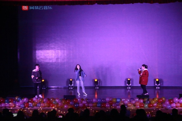 本次才艺大赛由FLY街舞社的劲爆街舞《Stars》拉开序幕,经过前几轮角逐后共有十二个节目进入决赛,其中我们主演或参演的节目共有四个,分别是说唱歌曲《说散就散》(孙奥,田宣,孟晴),弹唱歌曲《太阳》(杜婧雯,张圣杰,孙珂),男女对唱歌曲《浪费》(卜榆悦),乐器合奏纯音乐《贝加尔湖畔》(彭雨晨)。此外,我们拉拉队也表演了舞蹈作为串场节目。最终,经过激烈的比拼,在现场欢呼的分贝测定以及评委们认真评定后得出结果:歌曲《浪费》荣获才艺之星,说唱歌曲《说散就散》引燃全场荣获“最受欢迎奖”,歌曲《太阳》在冬日里给大家带来温暖荣获三等奖,合奏《贝加尔湖畔》以其悠扬婉转的曲风荣获一等奖。