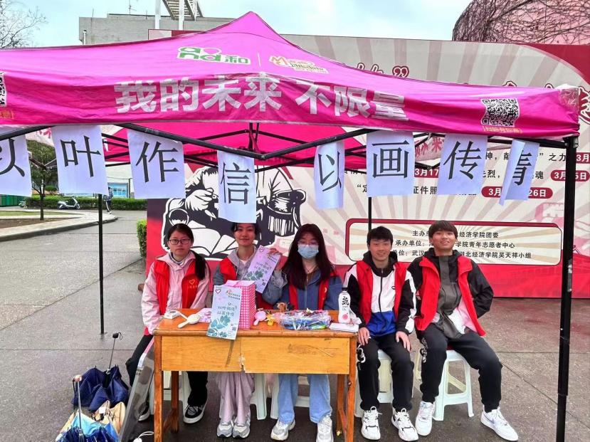 2023年3月11日的上午8:00至下午18:00,在一粟堂小广场前,由旅院青协举办的“以叶作信,以画传情”的春日主题活动正式进行。本次活动以“洋溢春风,寻觅春色”为主题,旨在以DIY的方式丰富同学们的课余生活。