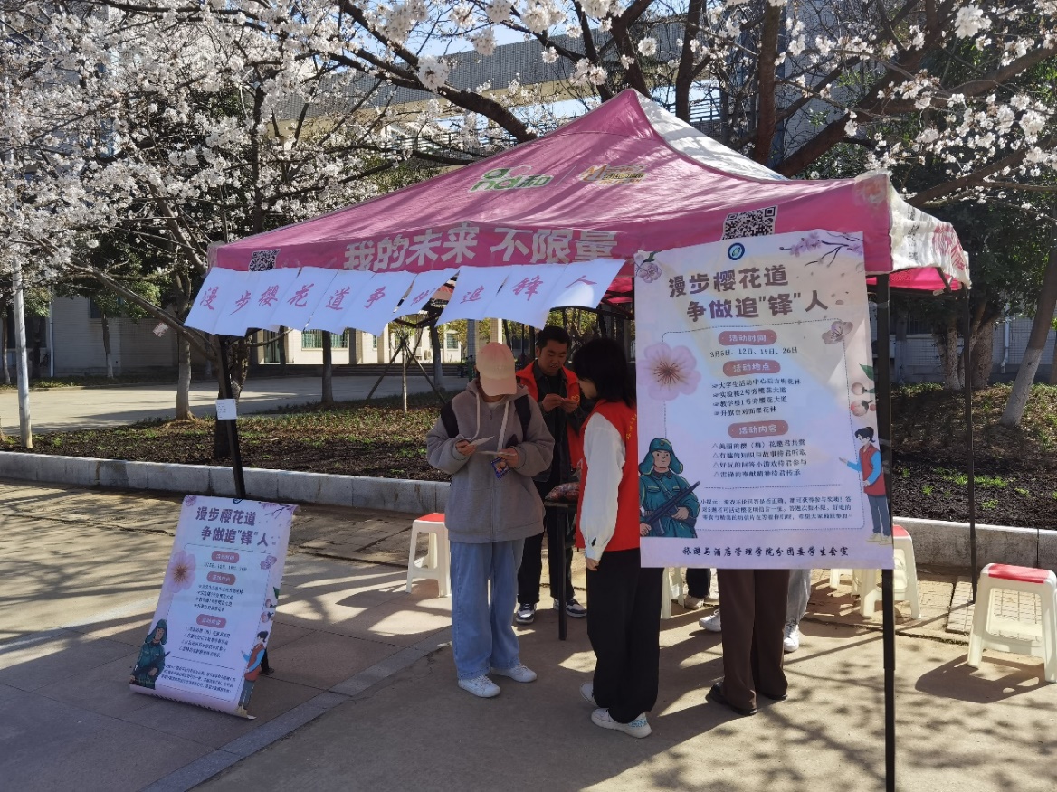 在温暖的三月,在青春的经院,“漫步樱花道,争做追‘锋’人”志愿服务活动仍在持续进行中,我们等您来共赏一场浪漫的樱花。
