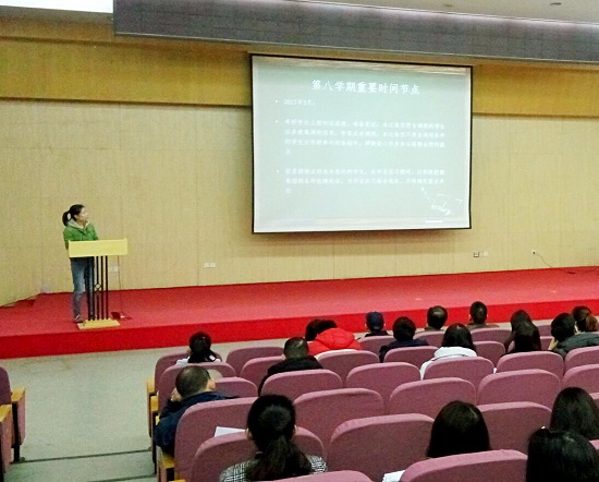 谭志国就毕业生毕业论文撰写时间规划、毕业论文答辩安排、毕业学分清理核算等一系列学生利益密切相关的重要问题进行一一梳理,提示大家合理安排好时间,将毕业论文撰写与毕业实习安排合理规划,做到“两不误”。