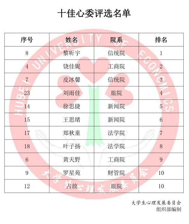 (通讯员:汪佳耀,编辑:陈瑶)6月5日,“十佳心委” 评选活动在大学生活动中心第五会议室成功举行。此次评选由校心协辅导老师及部分院系心协会长担任评委。