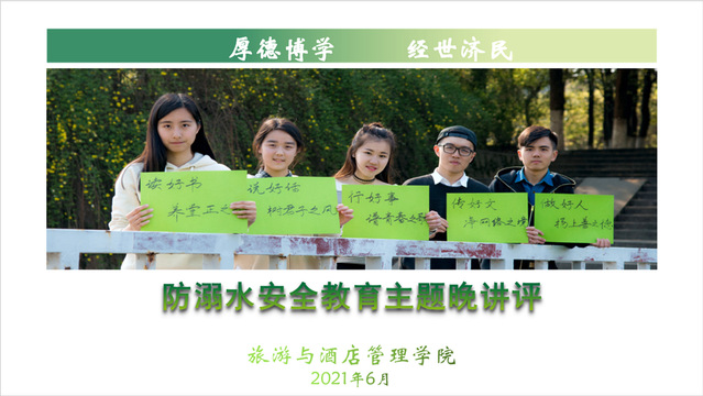 本次防溺水主题晚讲评,让学生们掌握了一定的溺水自救与预防知识,提升了防溺水安全意识,为大学生活打下了安全基础。
