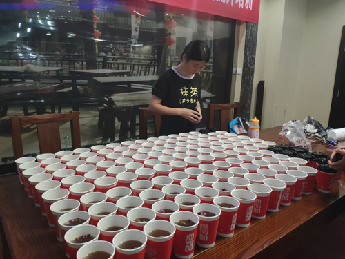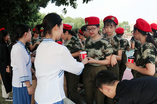陆源茶酒文化社与烹饪与营养教育协会凭借其社团特色,在旅游与酒店管理综合实训中心为新生精心制作玫瑰花茶与酸梅汤,并进行了相关活动准备;团委学生会则对下军营活动做了具体活动方案和执行。下午三点半,相关工作准备完毕,我们团委学生会主席团及社团工作人员将饮品送至东区篮球场新生军训地点。饮品依次送至我们新生与带训教官的手中,伴随着工作人员的问候与关怀,新生们在炎热的下午感受到了丝丝“清凉”。
