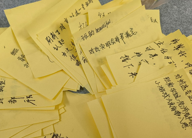 紧张又认真暖场游戏“抓逃手指”迅速活跃起了班级氛围,每位同学都参与其中,消除了彼此陌生感;专注又刺激的“击鼓传花”让同学们“防不胜防”,引得教室里一片欢声笑语;游戏“滚雪球”,通过趣味自我介绍、快速记名字等环节,让大家更好地互相熟悉,在轻松愉悦中提升新生们的参与感。最后,班助发放便签纸,请新生们写下对此次班会的感受或者对大学生活的初印象,更好了解新萌们的需要和想法,提供更温暖的帮助。