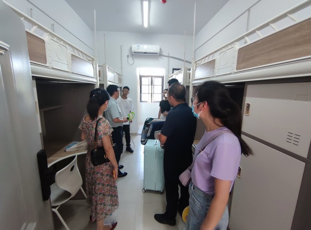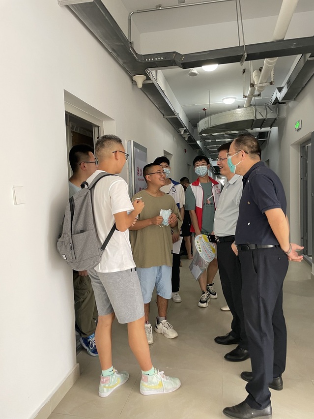 在学生宿舍,院领导与同学们亲切交谈,向同学们介绍学院的专业设置,学校的生活设施。对学生家长们表示亲切问候,强调学院会做好疫情防控工作,为学生们提供最优良的学习生活环境和发展空间。