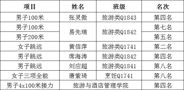 本次运动会,我们运动健儿们取得了喜人的成绩: