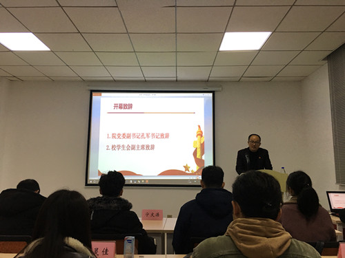 会议在主持人的宣读下隆重开幕。大会第一项,孔军书记代表我们进行开幕致辞。他希望全院同学在新一届的学生会带领下,振奋精神,努力拼搏,创造新的工作局面。校学生会副主席陈人杰代表我们校学生会发表致辞,一方面希望我们学生会与校学生会互帮互助,齐头并进;另一方面也预祝我们第一届学生代表大会圆满召开。