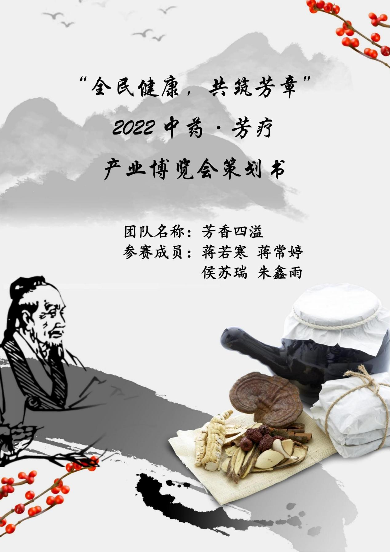 《“全民健康,共筑芳章”2022中药·芳疗产业博览会方案》 | 蒋若寒、蒋常婷、侯苏瑞、 朱鑫雨 | 邱敏 | 国家一等奖 | |