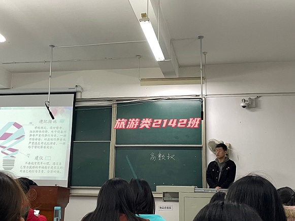 (通讯员:刘姗、李晓龙、陈瑶;摄影:崔鑫杰、宋乡月、刘姗)期末考试临近,21级新生即将迎来大学的第一次期末考试。为了缓解21级新生的焦虑情绪,帮助新生掌握期末复习备考的节奏和重点,旅游学院21级全体新生于2021年12月5日晚18:00,在教1-301、教1-303、教1-304及教1-505教室召开了期末备考交流会。交流会由21级各班班主任主持、21级新生班级党员班助、19级优秀党员代表崔鑫杰、李晓龙、宋乡月、刘姗、蒋若寒、施咏琪主讲。