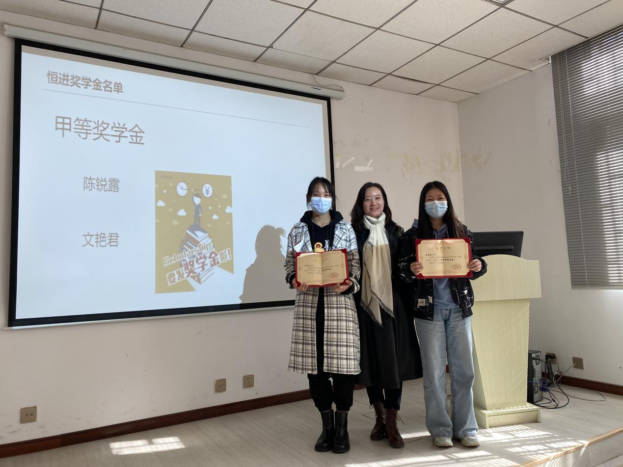 最后,蒋昕副院长为2021年恒进奖学金获得者颁发了荣誉证书,并对今年会展Q1841班同学的中期实习进行总结与分析,从提升抗压能力,注重目的引导,以及如何不做工具人等方面为同学们未来的工作提出了宝贵意见。