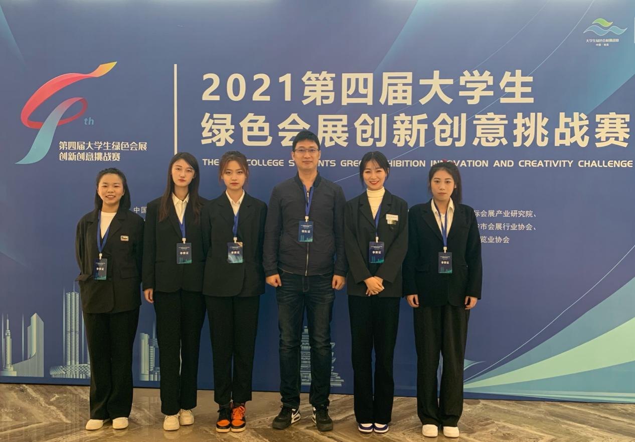 (供稿人:文超)12月9日-11日在江西南昌举办的“2021年第四届大学生绿色会展创新创意挑战赛”中,由我们学生严雨婷、徐娜、杨志佩、吴慧敏、陶如晴组成的团队在文超老师的指导下获得优秀奖。
