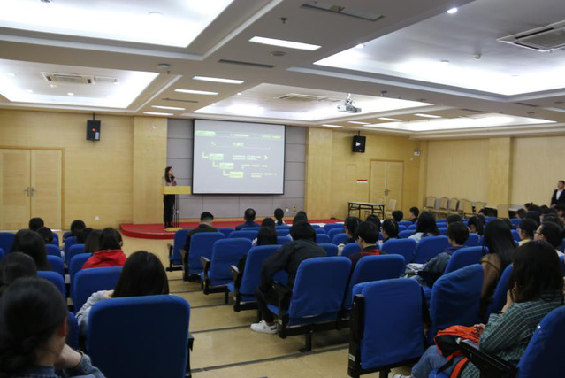 王晓梦以“感恩奋进,青春前行”为对学校相关的资助政策进行了详细而全面的解读,重点介绍了自强之星的评选过程。王老师以丛飞作为案例引导大学生学习他的感恩精神,同时也希望所有受助者能坚守诚信,成长为一个有温度、自强、自立的受助大学生。随后“自强之星”获得者王若涛发言,她从自身经历出发,希望每个受助人要心怀感恩,诚信为人,精神脱贫,自立自强,成长为一个感恩于心,励志前行的大学生。最后全体师生观看电影《当幸福来敲门》,影片中父子相互扶持,奋斗不止的故事,感动并感染了现场的同学们。