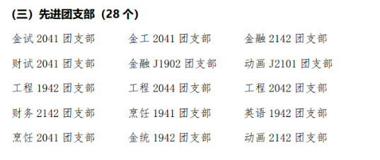 (通讯:刘超)近日,校团委发文表彰2021年度“五·四”先进集体、先进个人,全校五四先进集体表彰名单中,我们团委连续三年获评先进分团委,烹饪1941团支部、烹饪2041团支部获评先进团支部;全校五四先进个人表彰名单中,我们辅导员刘超获评优秀分团委书记,刘姗同学获评五四红旗标兵,王杨慧、李庭瑞同学获评十佳志愿者,张艳玲等9名同学获评优秀团干部,李梦晗等37名同学获评优秀团员。
