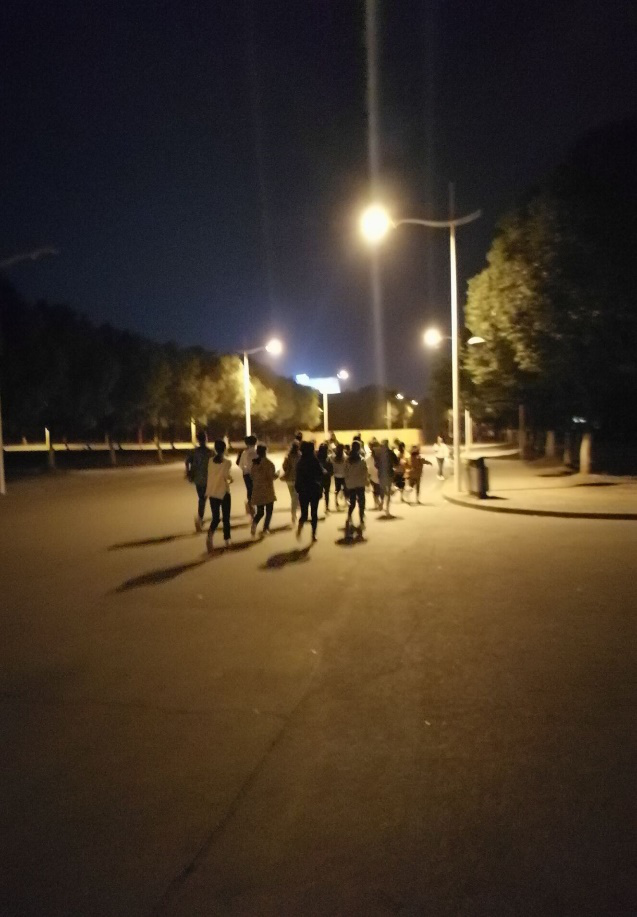 11月4日下午17:00点旅游Q1743班进行了本周的晚点名活动,大家在一粟堂小广场集合,首先由班长肖澳清点班级人数,强调本周事宜之后在东区田径场南集合按照女生两列男生一列进行本次的腾龙晚跑活动。